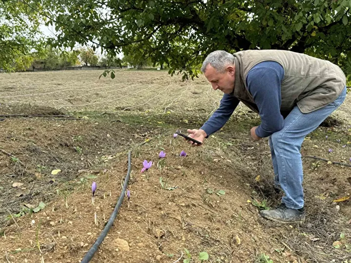 Yaz mevsiminin kurak geçmesinin ardından ekimine geç başlanan ve fiyatı nedeniyle “dünyanın en pahalı baharatı” olarak adlandırılan safran bitkisi, hava sıcaklıklarının istenilen seviyede olması dolayısıyla beklenenden erken çiçek açtı.