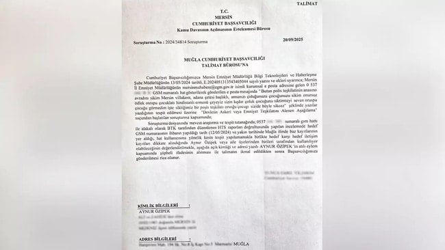BTK, maili Aynur Özipek’in attığını belgeledi.