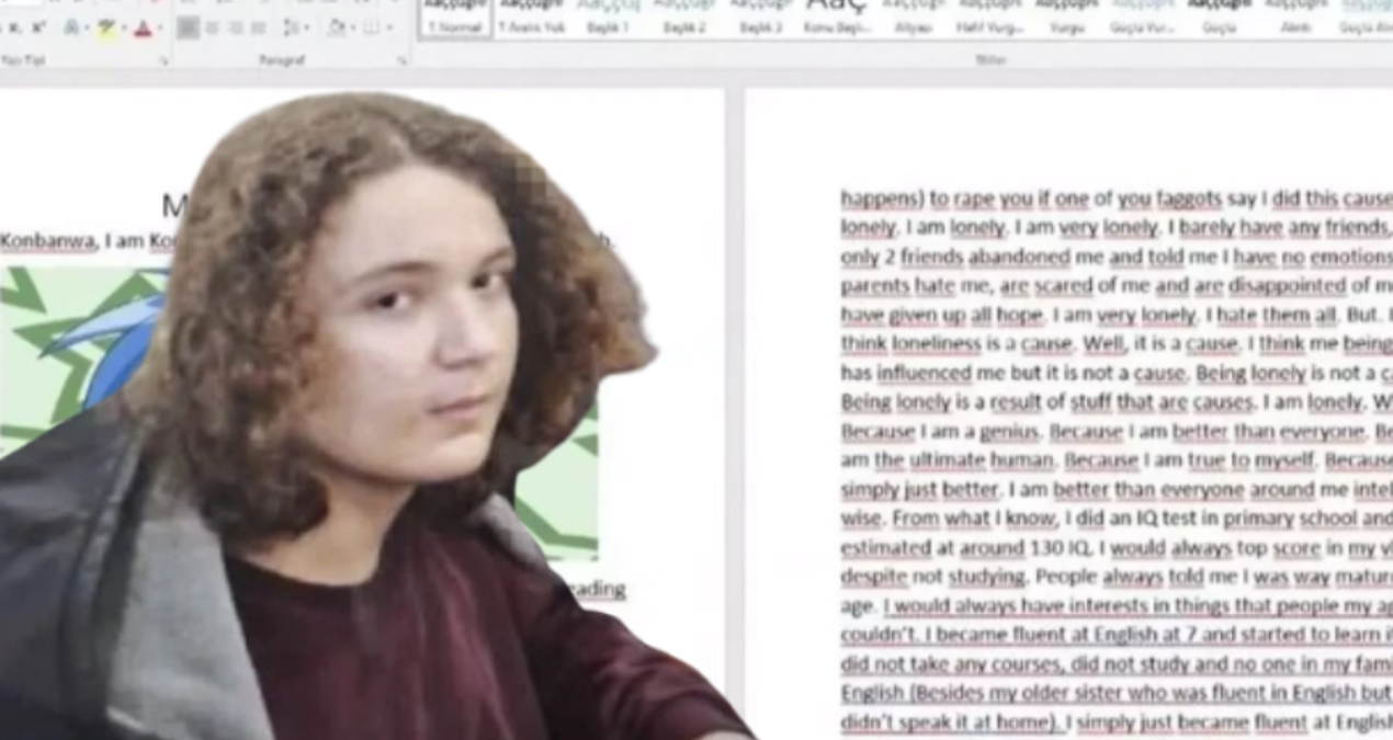 Eğitim hayatıyla ilgili de çarpıcı açıklamalarda bulunan saldırgan, “Okulu bıraktım. Anaokulundan itibaren İngilizce öğrendim. 3. sınıfa kadar okudum, sonra okulu terk ettim. Küçükken bile okuldaki herkesten daha zeki olduğumu düşünürdüm. Onlara bakar ve ‘annemin saçma arkadaşlarının çocukları’ gibi görürdüm. Hızlı öğrenemeyenlerden çok daha üstün olduğumu biliyordum. Bu yüzden okulu bıraktım; kendi kendime öğrenmek daha hızlıydı” ifadeleriyle, eğitim sistemine dair olumsuz düşüncelerini paylaştı.