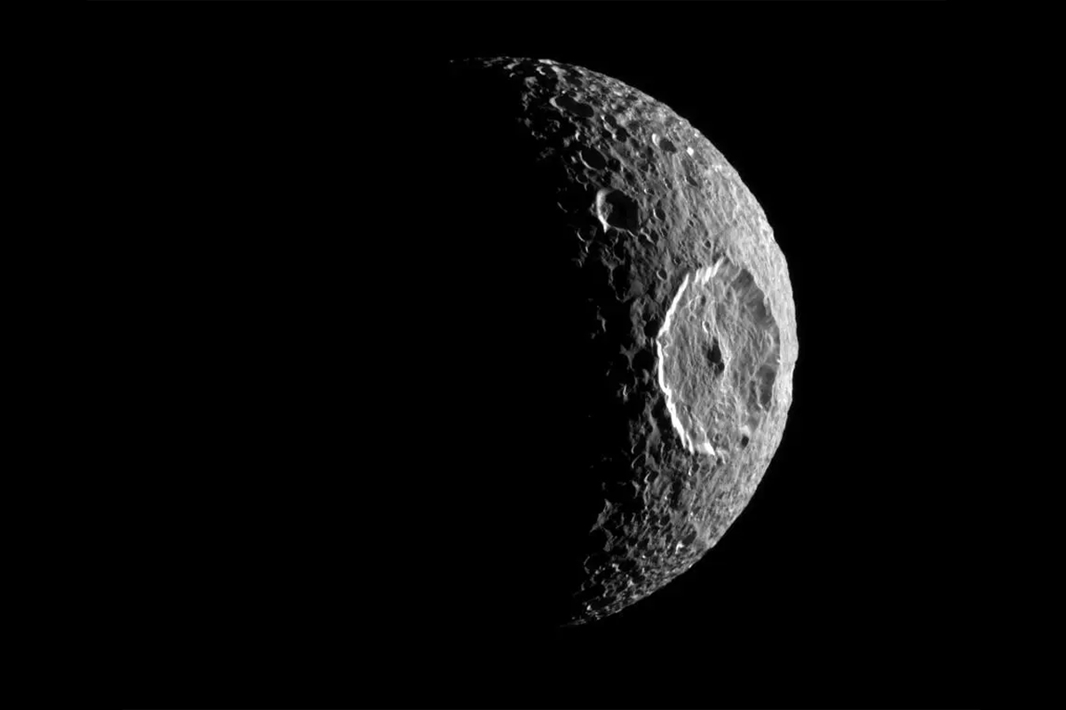 Öte yandan Mimas, popüler kültürdeki “Death Star” benzetmesiyle de tanınıyor. Uydunun yüzeyinin üçte birini kaplayan Herschel Krateri, çapı 130 kilometre olan devasa bir yapıya sahip ve okyanus tartışmalarında kilit rol oynuyor. Kraterin şekli, oluştuğu zeminin sertliği hakkında ipuçları veriyor. Simülasyonlar, Herschel’in oluştuğu dönemde buzun tamamen katı olamayacağını, yani uydunun erime noktasına yakın bir sıcaklıkta bulunduğunu gösteriyor.