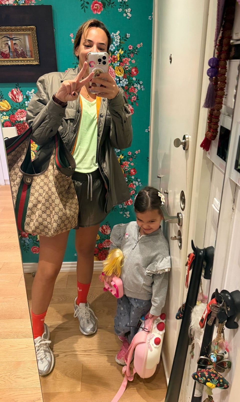 Ünlü oyuncu son olarak da küçük kızı Ela ile ayna karşısında verdiği pozu takipçileriyle paylaştı. Anne kızın fotoğrafı büyük ilgi gördü.